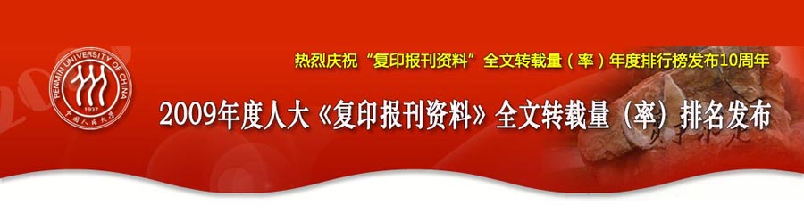 复印报刊资料系列学术刊是从中国公开出版的报刊上搜集、精选人文社会科学学术论文和相关信息,由学科专家和学术编辑共同遴选,并按学科门类进行转载的规模化、专业化、标准化、体系化的精品刊群。作为一个独特的学术品牌,复印报刊资料在新中国人文社会科学学术研究和高等教育繁荣发展的进程中做出了特殊贡献。“精选千家报刊”的特性使其从诞生伊始就具备了“评”的雏形。在60年的发展过程中,复印报刊资料不断根据中国人文社会科学的发展需要调整期刊布局,专题种类逐渐增多、学科分布更加全面细化。复印报刊资料的编辑和编委按照不同专题的学科要求,精选出有前沿性、创新性、学术性及争论性的文章,使复印报刊资料“荟萃中华学术”,成为“以全为基础、以精为核心”的参考材料。经过不断地调整、发展,复印报刊资料的评文选文体系渐趋成熟。2010年,经过广泛调研和总结经验,研制出“人文社科论文质量评估指标体系”,建立了学术创新程度、论证完备程度、社会价值、难易程度四项主要指标,与课题立项、发表载体两项辅助指标,共同组成的复印报刊资料学术论文评价指标体系。同时,复印报刊资料还从学科覆盖、专业团队、流程规范、学术精选等自身特色上逐步确立和夯实了学术评价功能,并在学术界和期刊界引起广泛关注和深入探讨。人文社科领域普遍认为,复印报刊资料可以作为评价人文社会科学学术影响力的重要工具之一。